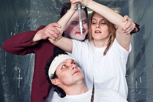 Liam Morris, foreground, Allan Michael Brunet and Heather Marie Annis, in the Soup Can Theatre production of, ‘Marat/Sade’. Photo/SCARLET O’NEILL