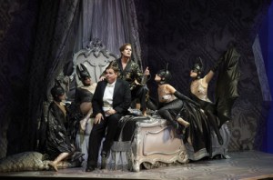 Alden says in his program note (although it’s beautifully clear in the staging) that “Dr Falke seems a lot like Dr Freud as he invites Rosalinde, Eisenstein, Adele and Frank to the dreamy libidinous party”.  Falke wields his watch at key moments even though his control is as unnecessary as the superficial plot mechanisms Wagner uses of a love potion (Tristan und Isolde) or a curse (the Ring cycle).  We are watching a story about dreams & wish-fulfillment, where the good doctor helps each of these people explore their hopes & expectations.  No wonder, then, that Alden employs more bats than the Toronto Blue Jays, exploiting the overtones of something nightmarish and scary to probe deeply into this pleasure-seeking milieu.