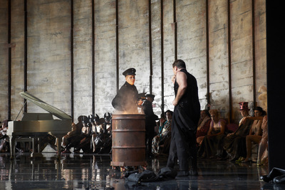But the excellence doesn’t end there.  Michael Schade brought his usual fluid German and effortless singing to Eisenstein.  James Westman was a suitably embarrassed Frank, Peter Barrett, a constant presence (especially when he was hanging above the stage) as Dr Falke, and Jan Pohl, able to steal the show whenever he wanted to as Frosch the jailer; he was a troubling spectre of what was to come, giving the part a decidedly brown-shirted aura.
