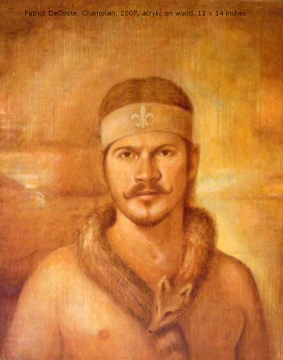 Patrick DeCoste: “Champlain (self portrait)”, 2009, acrylic on wood, 12 x 14 inches