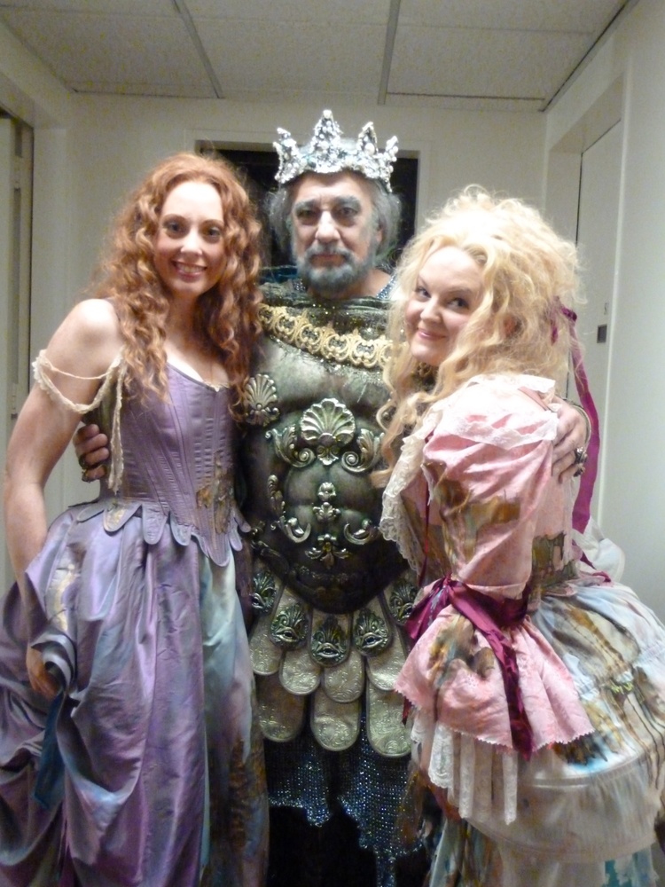 Elizabeth DeShong backstage with Layla Clare and Placido Domingo in the Metropolitan Opera’s “Enchanted Island”, 2011.
