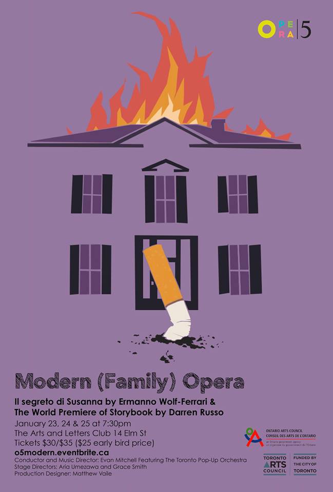 I’m grateful to Russo, Umezawa and Opera 5 for the splendid conversation. Opera 5’s program “Modern (Family) Opera” will be presented again January 24 & 25 at 7:30 pm at the Arts and Letters Club.