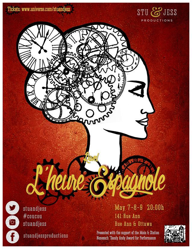 The time is short. Stu &Jess Productions will be presenting Ravel’s wonderful L’Heure Espagnole in Montreal the weekend of May 7-9.