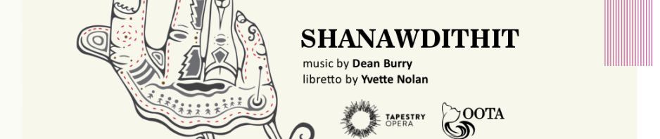 - Sunday October 14th was the workshop for a new opera being developed by Tapestry Opera and Opera on the Avalon in partnership with Native Earth Performing Arts, namely Shanawdithit by Dean Burry & Yvette Nolan, directed by Nolan & Michael Mori.