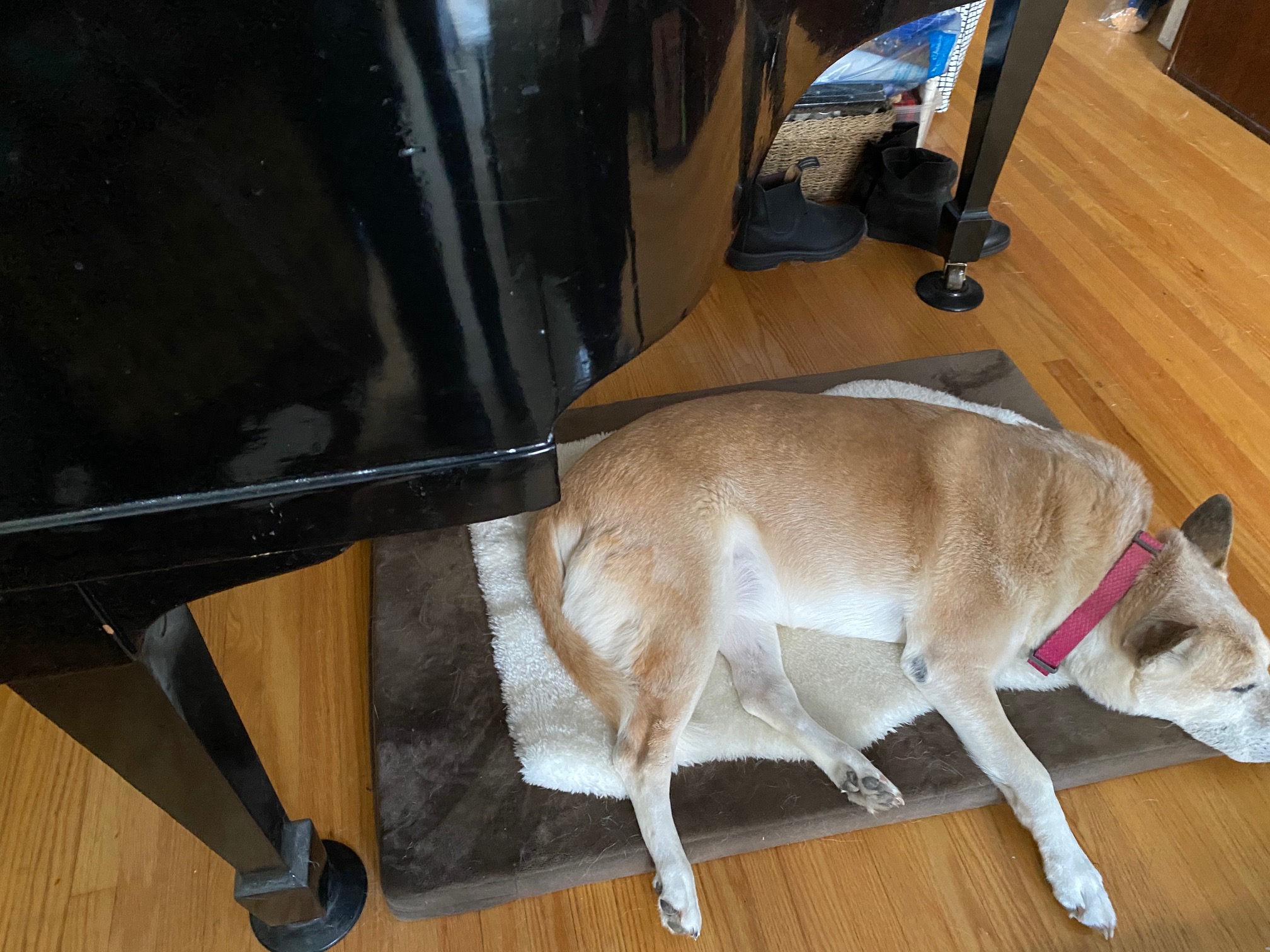 So it was an unexpected relief when I saw her eyes finally closed today in the afternoon, under the piano. I played a series of pieces out of an old anthology of modern piano pieces.