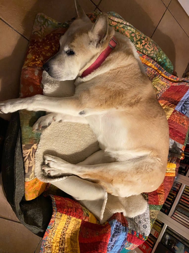 I’m not sure when I became conscious that this was going to last, but I was incredibly busy at work, writing procedures, doing long hours…So I couldn’t blog as often, and when I did it was more likely to be about a book or a film, or music I was making at home. And I was being extra careful to stay positive (as Stacey advised me), which is a big reason I talked so much about Sam the dog lately. She cheers me up.