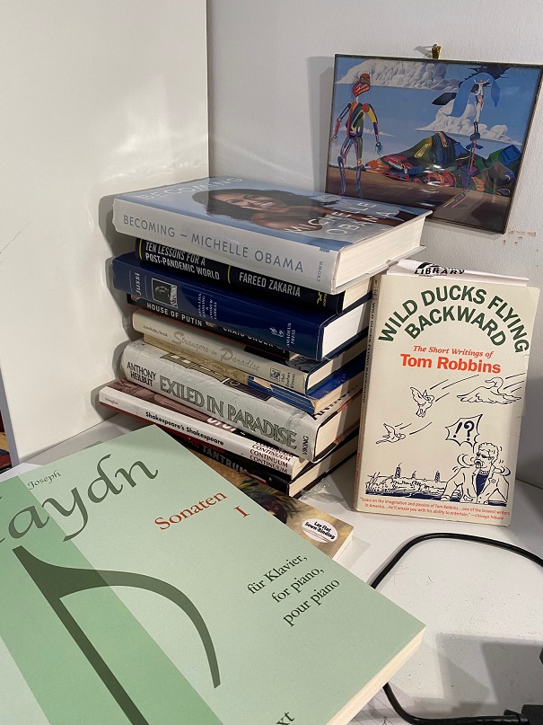 My title might be an unconscious imitation of Tom Robbins’ Still-life with Woodpecker.