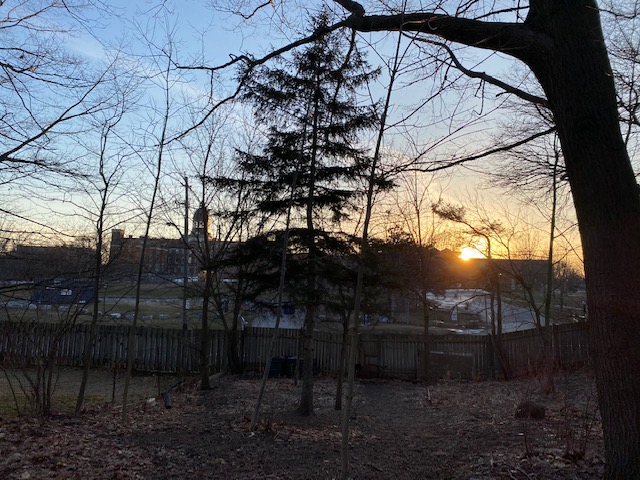 Being outside with the dog I see the changing seasons in the sun’s daily arc. If you find a reference point, you can see the differences in where the sun is rising and setting. It varies ever so slightly each day just as the length of day varies a tiny bit each day. On the shortest day of the year I made a note of where the sun set. Currently it’s a bit further north, moving yet further north every day. That makes sense right? In the depths of winter, the sun is further to the south of us, its rays indirect and not terribly warming, giving Argentina & Australia their longest days, while leaving those who are further north, like the Scandinavians, let alone the Arctic, in darkness. And on the summer solstice (that longest day), the sun will be more overhead, its rays more direct: and for that reason, much warmer.