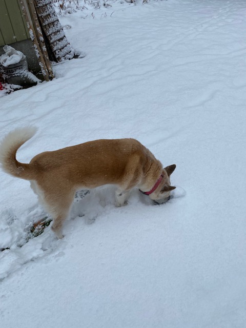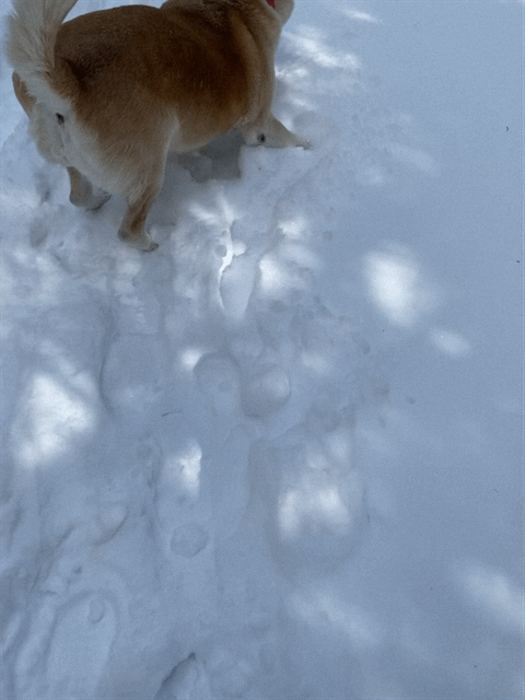 This morning I took Sam outside, as we explored the first blanket of white. I let Sam off the leash (we start on the leash as a disciplinary thing, but also as a safety thing). She isn’t as agile as she was when I got this gif of her spinning in place in the snow, back in February.