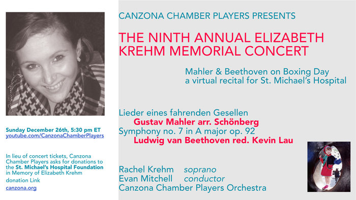 In lieu of concert tickets, Canzona Chamber Players asks for donations to the St. Michael’s Hospital Foundation, in Memory of Elizabeth Krehm