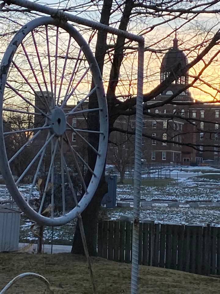 I watched the sun vanishing behind the Seminary building, a bit later each day, as the days get longer oh so gradually.