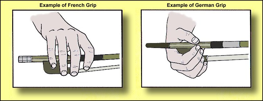 BARCZABLOG I looked up a comparison of French vs German bowing online, finding a discussion on this website that tells you more.