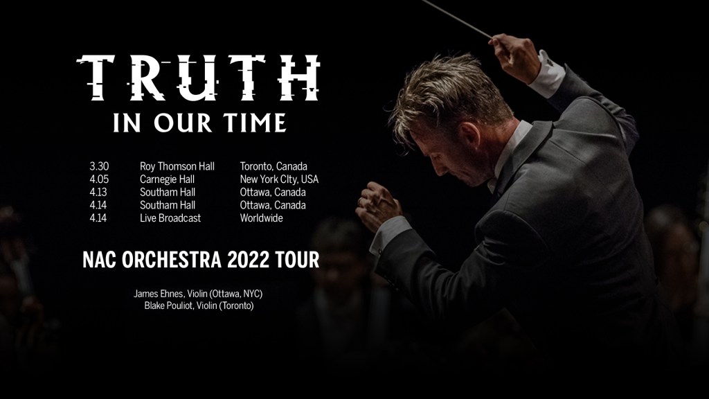 It’s an ambitious package, this National Arts Centre Orchestra Tour. There’s a world premiere of a Philip Glass symphony, commissioned by the family of newsman Peter Jennings, and three other works collected around the idea of “truth in our time”, as a reflection of a great Canadian journalist.