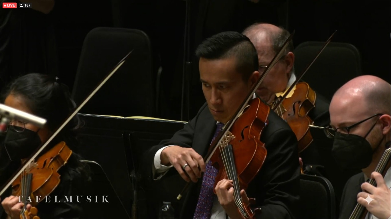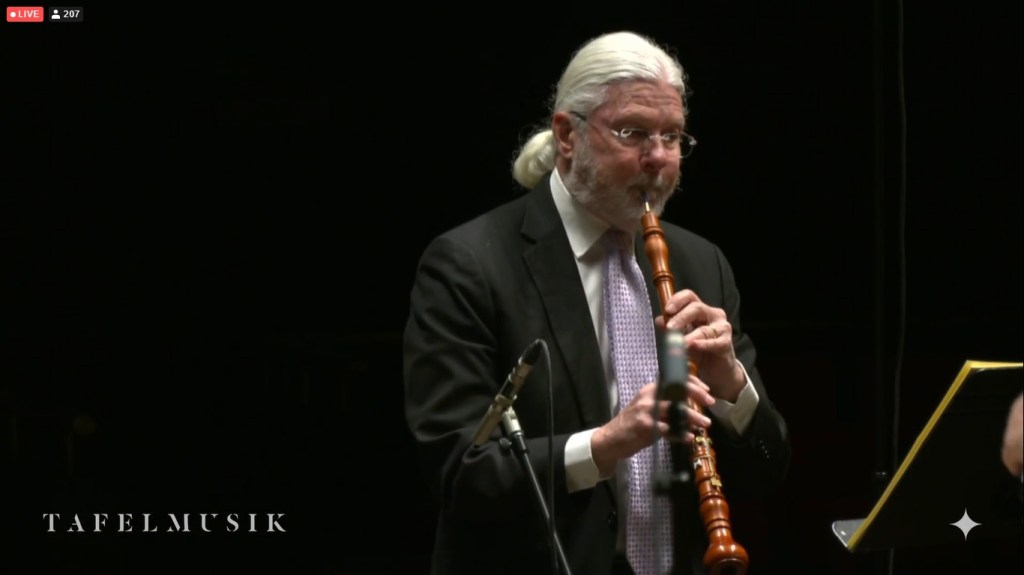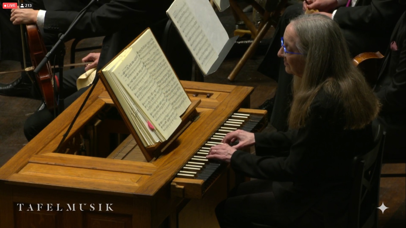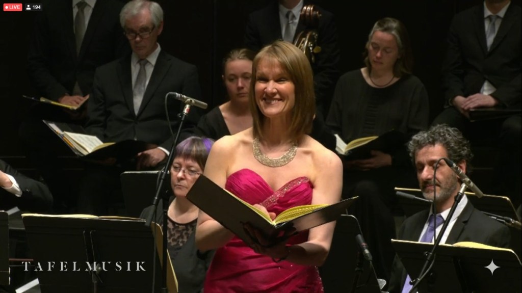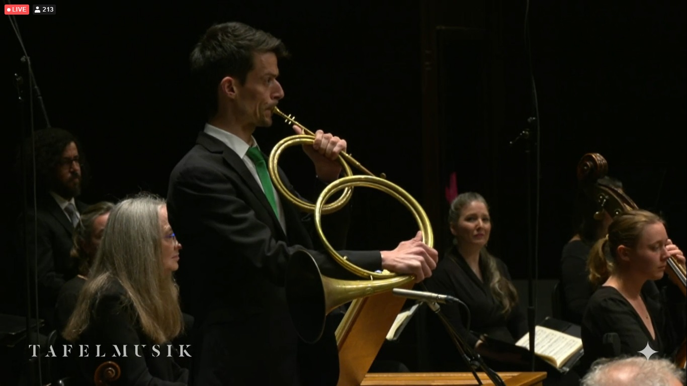 It was a bit surreal. The guest conductor Masaaki Suzuki, the four soloists (Joanne Lunn soprano; Tim Mead countertenor; Thomas Hobbs, tenor; Jonathon Adams, baritone), the orchestra, and the Tafelmusik chamber choir came out on the Massey Hall stage: or so I assumed watching the view on my laptop. We never got a view into the hall, which would confirm the location: although I’m pretty sure they’re telling the truth.