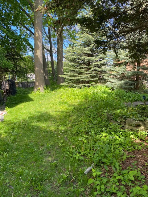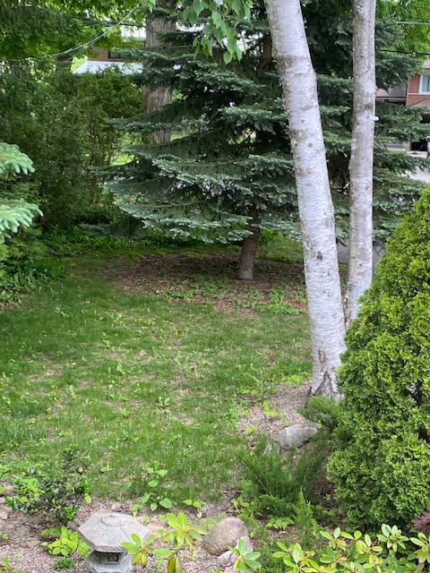 We rely more on bushes and trees. It’s not just that I’m mindful of bees and pollinators. In the back there’s also the noise factor, vehicles going up and down Brimley Rd. Mother Nature is my pal when she helps the bushes and trees grow, acting as noise absorbers.