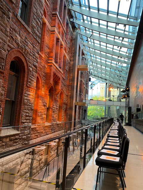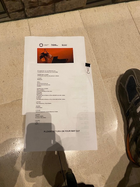 The RCM buildings combine old and new styles into a whole, in a style we might call “post-modern”. I doubt that Current was consciously imitating the eclectic mix, but his musical choices vary broadly, at times offering us a romantic sound-world, at times dissonant. There’s a moment when the libretto speaks of dodecaphony (if I recall correctly), a word I would assume means the twelve-tone approach to music we know from composers such as Schoenberg: but I couldn’t be sure whether that’s reflected precisely in what Current composed. My understanding of po-mo is a refusal or even a repudiation of modernism, including a willingness to recycle and repurpose the old, to combine and mix, to be pluralistic and eclectic rather than adhering to a single objective.