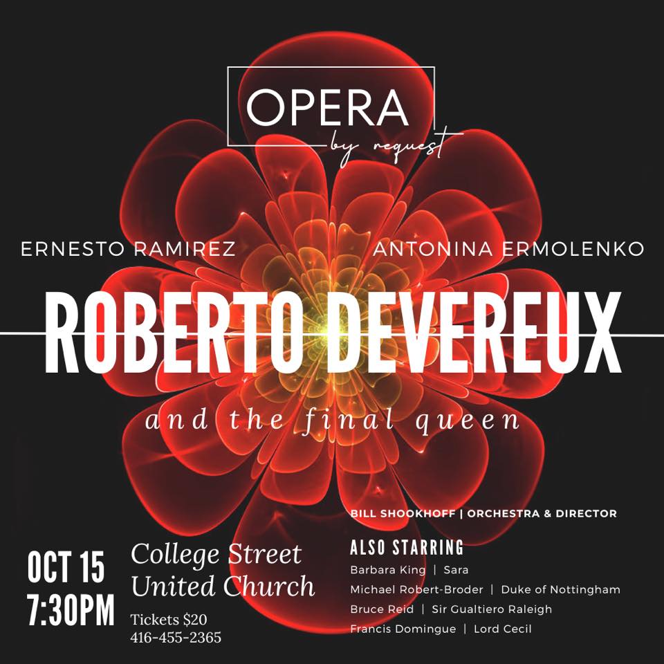 “the final chapter of The Three Queens with Donizetti’s Roberto Devereux, starring Canada’s formidable Ernesto Ramirez and Antonina Ermolenko in the leading roles… Ably assisted by mezzo-soprano Barbara King, baritone Michael Robert-Broder, and Francis Domingue and Bruce Reid.”