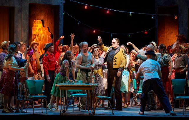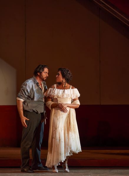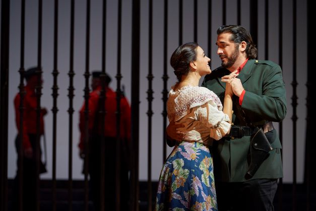 American mezzo-soprano J’Nai Bridges brings a sultry sound and a smoldering hot stage presence to everyone’s favorite femme fatale. She is especially good in the last scene with tenor Marcelo Puente, and he saved the best for last. I’ve never seen such a hair-raising interpretation for the last pages of the opera.