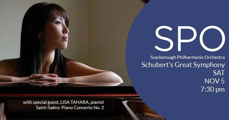 This performance features Schubert’s masterpiece and a virtuosic piano concerto by Saint-Saëns to be performed by brilliant local pianist, Lisa Tahara.