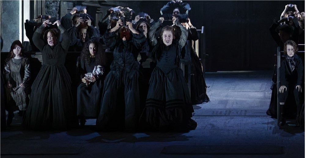 As for being positive, I’m aiming to avoid attacking people who put themselves out there, vulnerably onstage / in concerts etc. When I dislike something I leave it out, rather than cutting it up. And as far as the chorus performance (male vs female), I thought the men had an easier task, more or less standing and delivering, while the women are an essential part of the story-telling, in effect playing one of the characters (a group of witches, not the three as in Shakespeare). But maybe your performance wasn’t as impressive..? I know that the first scene blew me away. ALSO the last act built up tremendously. Full disclosure: i’ve never really liked this opera very much. having played its music with my brother (he sang the first apparition early in his career, and later learned the title role). I’m not sure I fully understood it…? I believe this production gives me an angle on it I’ve never had before, taking it beyond bel canto to something very political and theatrical. To each his/her own of course!