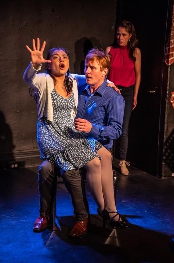 That’s my preamble to suggest that Inge(new) is not an easy play and should not be judged the way popular musicals are judged. Never mind mainstream / commercial aspirations, when you’re being this ambitious. Its drama is generated out of the tension of an audition situation, Bridget (Mairi Babb) directing questions at the director for whom she’s auditioning. We’ll also meet the much younger Joy (Elora Joy Sarmiento) who’s also auditioning and Gertrude (Astrid Van Wieren) who is older still. The problematics of the title begin to come into focus as we are reminded of how the audition process is conditioned by expectations around casting, and the ambiguities around age. It’s something that has long fascinated me, the way middle aged opera singers get cast as Butterfly (age 15) or Juliet (age 12). In fairness, when opera and operetta (aka musicals before WW II) required virtuoso singers the audience was expected to check their requirement for verisimilitude at the door, singing somehow compensating for what our eyes told us. That was far easier to do sitting far away from the stage, than in our time of high definition broadcasts and close-up camera work.