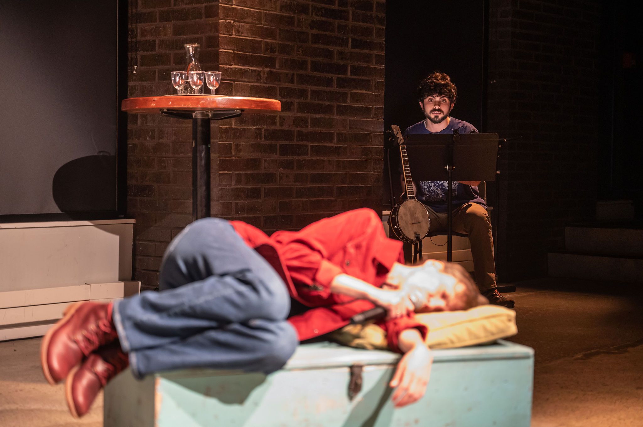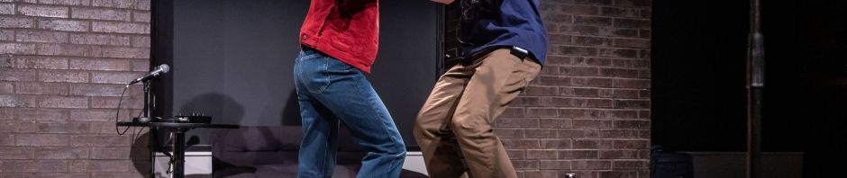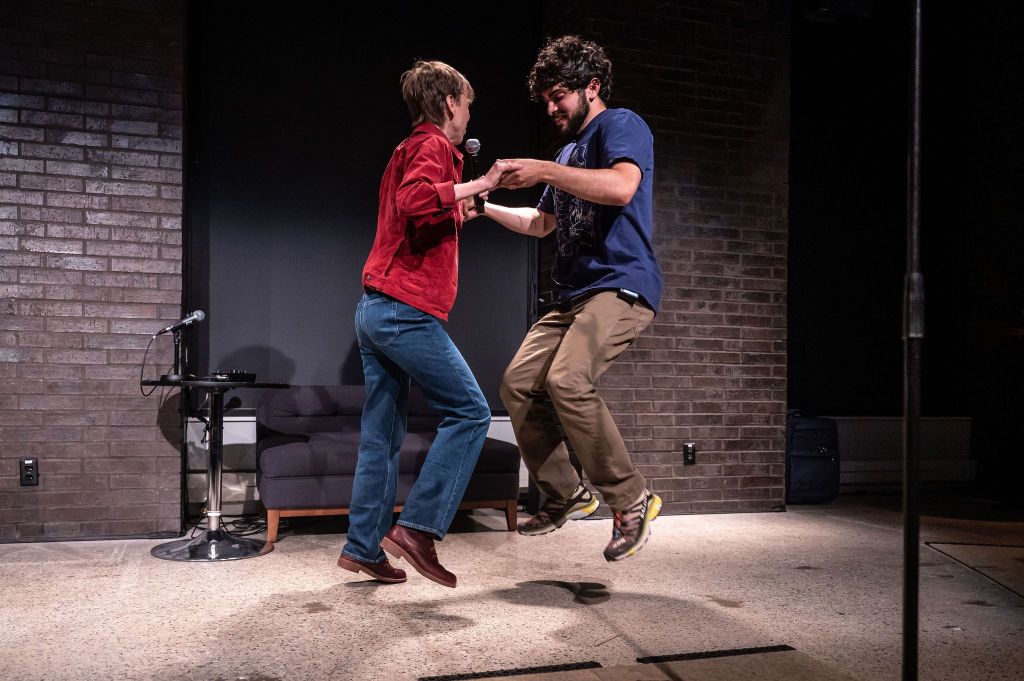 The relatively bare stage is apt for a show inviting us to identify and perhaps wonder: “what might it be like?” We don’t need an actual bed or airplane to be taken on a trip with Alex and Enzo and James. Leah Cherniak directs this minimalist show. There’s not much there and that’s a good thing. I closed my eyes a few times, listening rather than staring, swept up in sensory images.