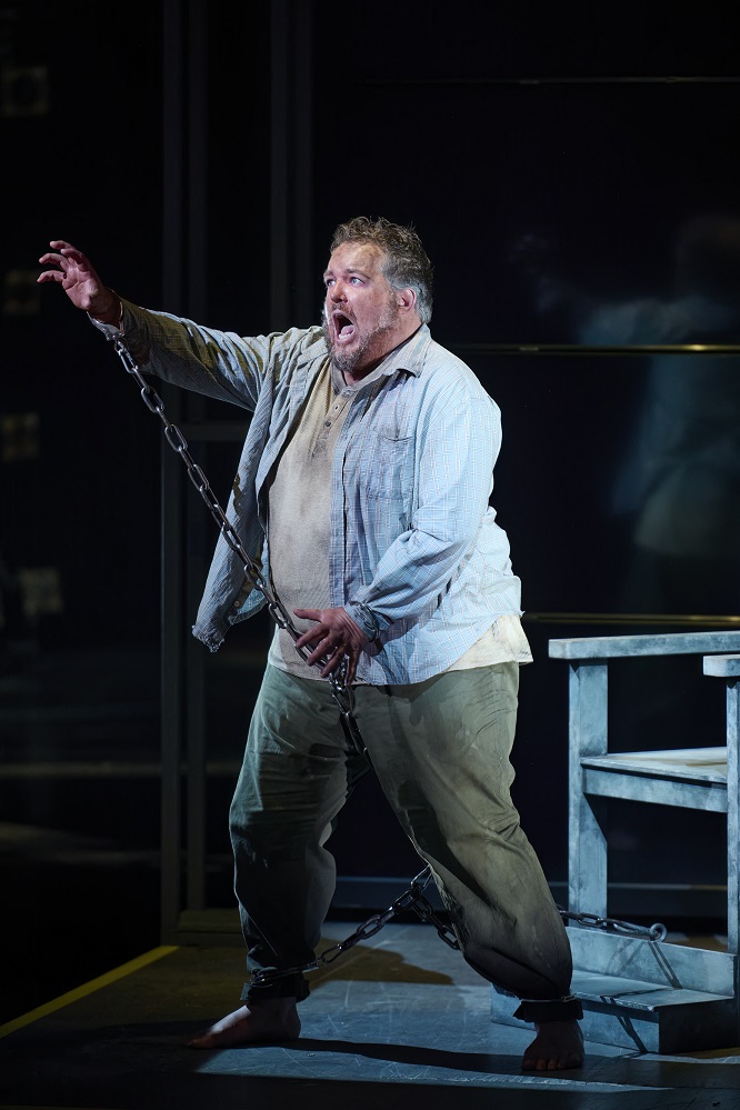 After intermission of course, everything shifts. The design concept works brilliantly as we meet Florestan (Clay Hilley) in one of the great solos of all opera, and he doesn’t disappoint, aided by Nichols’s stunning projections.