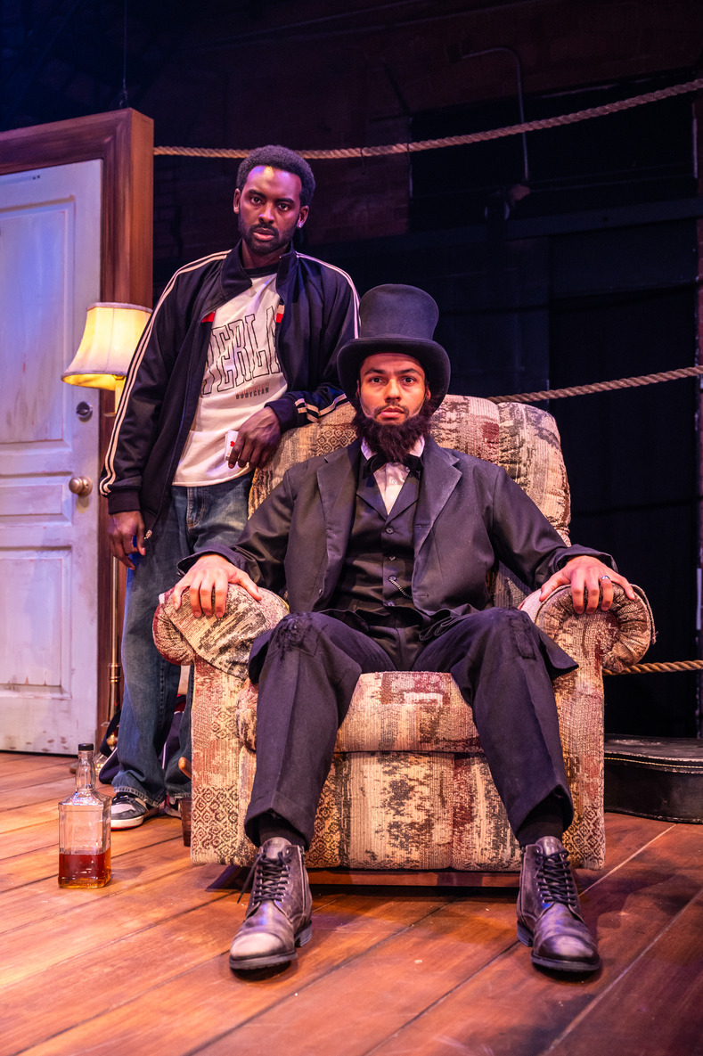 What’s magical about Booth and Lincoln is how in spite of their conflicts and struggles they sometimes do show loyalty to one another, brotherly love in a tough situation. Poverty doesn’t daunt them. even if one can’t miss the destiny laid upon them by the names and their circumstances. The dialogue is masterfully written, executed beautifully by these two men, their presence so vital and alive in the intimate space.