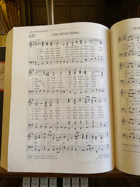 Perhaps it’s because of this funny combination celebration in 2023, that I notice how the hymn For All the Saints hints at a kind of spiritual war in sainthood, speaking to both kinds of sainthood. The tune from Ralph Vaughan Williams lures the organist to play quickly. I believe the congregation appreciate my restraint in not rushing, as it’s not a race. And the words are more intelligible if we don’t go too fast. We lose the opportunity to meditate on the text when we go too fast.