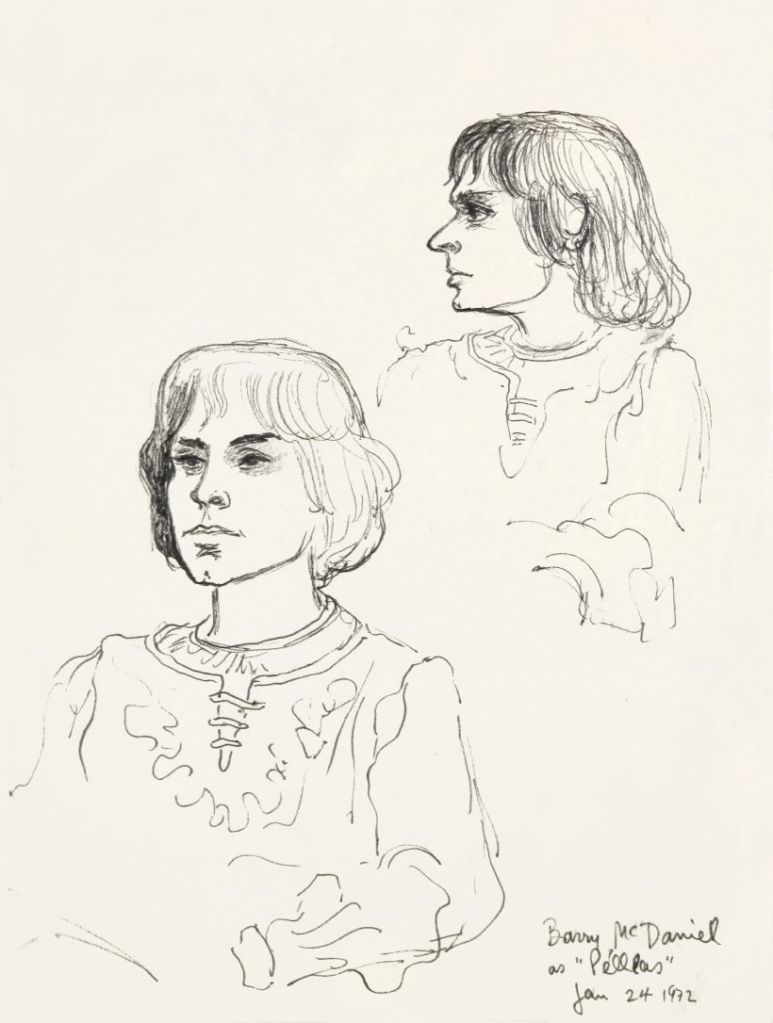 So when the Suits floated, “how about a hundred dollars?” I was perfectly fine with it, and after that my mom couldn’t say anything really. And so it was that while Blegen, Stuart, Tozzi et al were raking in thousands every show, my total gross pay for nine shows as Yniold in PELLÉAS in the 1971-72 season was nine hundred dollars.