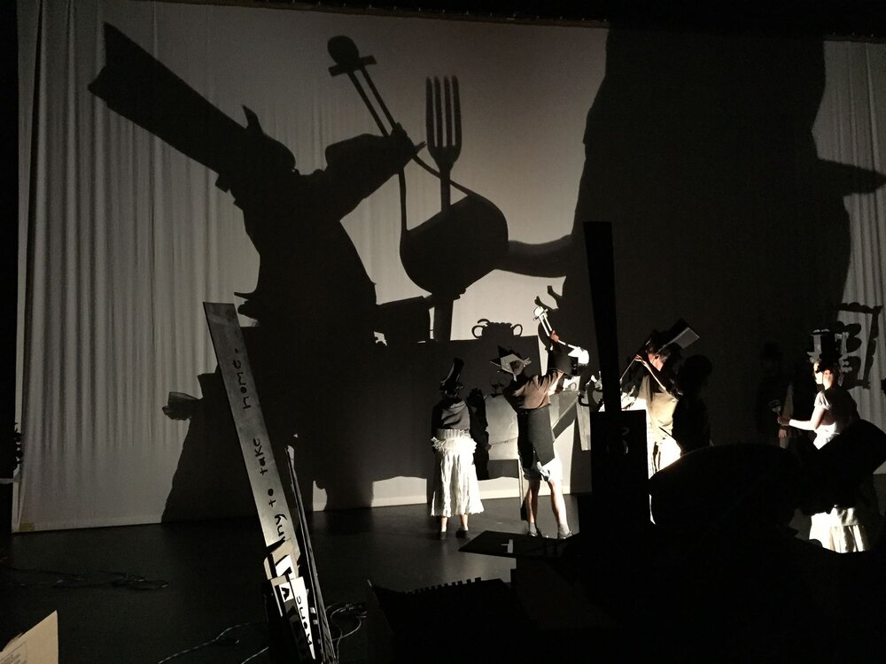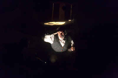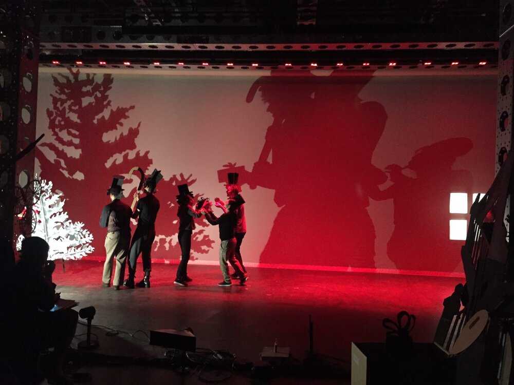 Now I mention co-director Mark Down, whom as I understand it Phelim brought in to the project, though I don’t remember why he thought two directors would be better: it might be because Mark had a lot of experience with shadow puppetry; I don’t think it’s because quite a few of the actors were in Mark’s troupe. Anyway, though we were all present at rehearsals, I don’t know what was discussed between Phelim and Mark outside rehearsals, and so I don’t know just how much of MATCH GIRL was Phelim’s, how much was Mark’s and how much was us actors’.