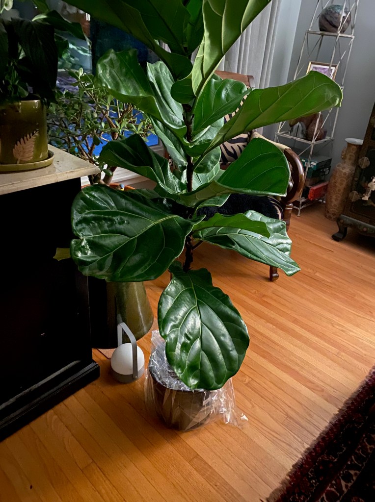 Our new plant only cost us $49.00, even though a GTA store (not naming names) would have charged us four times as much or more. It’s about the same height as Erika which is to say 64 inches.