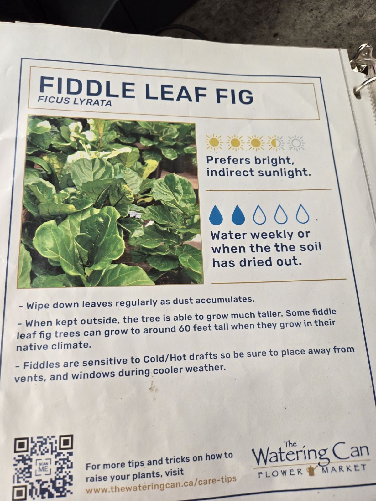 The Watering Can isn’t just a plant warehouse but much more. Erika showed me the write-up they share on this plant, known as a Fiddle Leaf Fig (ficus lyrata). Helpful staff showed us information on a page in a big book, that’s also available online.
