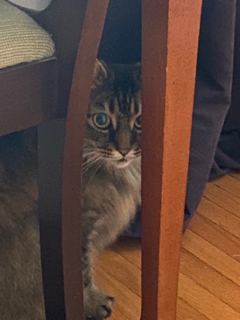 Zenia is kind of shy, apparently because of a troubled history, bullied by an earlier feline housemate.