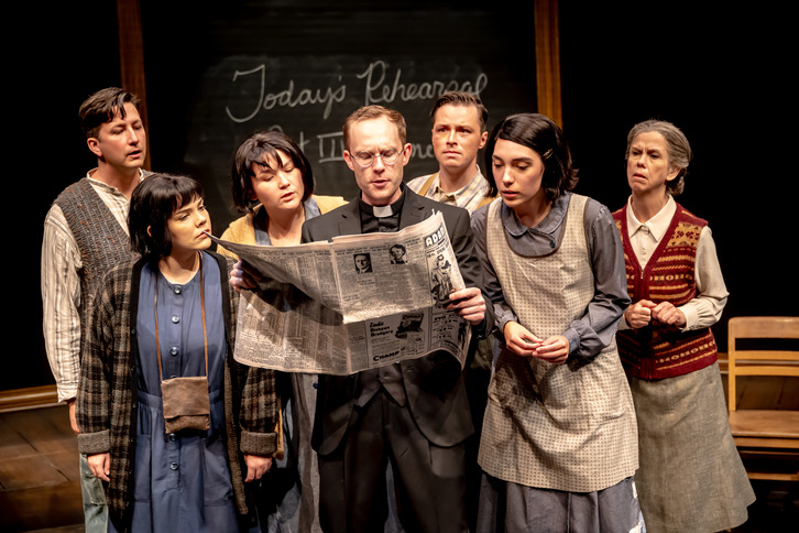Father Callum (Nathan Howe) hopes that donors seeing the student play performance will help pay for needed repairs to the roof of their building. When a newspaper reporter (Amanda Lisman) comes to see their preparations for the royal visit, leading to a feature article publicizing their production, the project is pushed in a new direction.