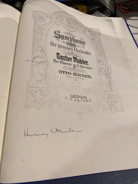 I share that picture because it has the signature of Harvey Olnick, a University of Toronto professor who gave the score to the library. I remember him fondly for his deep voice and generous manner.
