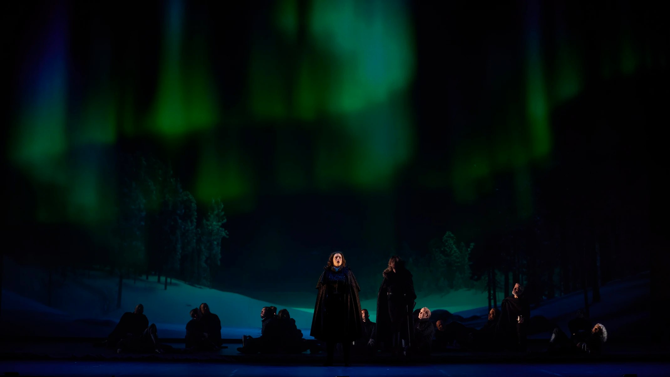 Bilodeau used a recurring sound from the first scene until the last regularly throughout the opera, identified as kulning, a strident animal call sung without vibrato by soprano Anne-Marie Beaudette. Sometimes we would be looking at a landscape, snow falling or northern lights, achieved via wonderful projections by Alexandre Desjardins, the sound like an atmospheric effect, jarring even as the opera went on.