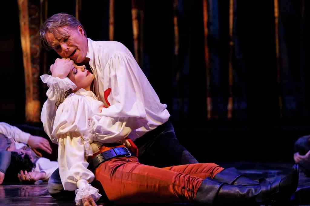 The principals were effective, working with the gorgeous sounds of the Tafelmusik Baroque Orchestra and Tafelmusik Chamber Choir, conducted by David Fallis, sensitively ensuring that the singers were never covered. At times the choir, singing from the balcony, seem to address thoughts inside a singer’s head, as in the scene where Jonathan (Mireille Asselin) contemplates his conflicting loyalties and the upcoming battle. The sanest happiest characters at the heart of the story are the title roles of David (Colin Ainsworth) and Jonathan, surrounded by intrigue and lunacy. It’s a thrill hearing the powerful tenor voice of Colin Ainsworth, a stalwart performer for Opera Atelier.