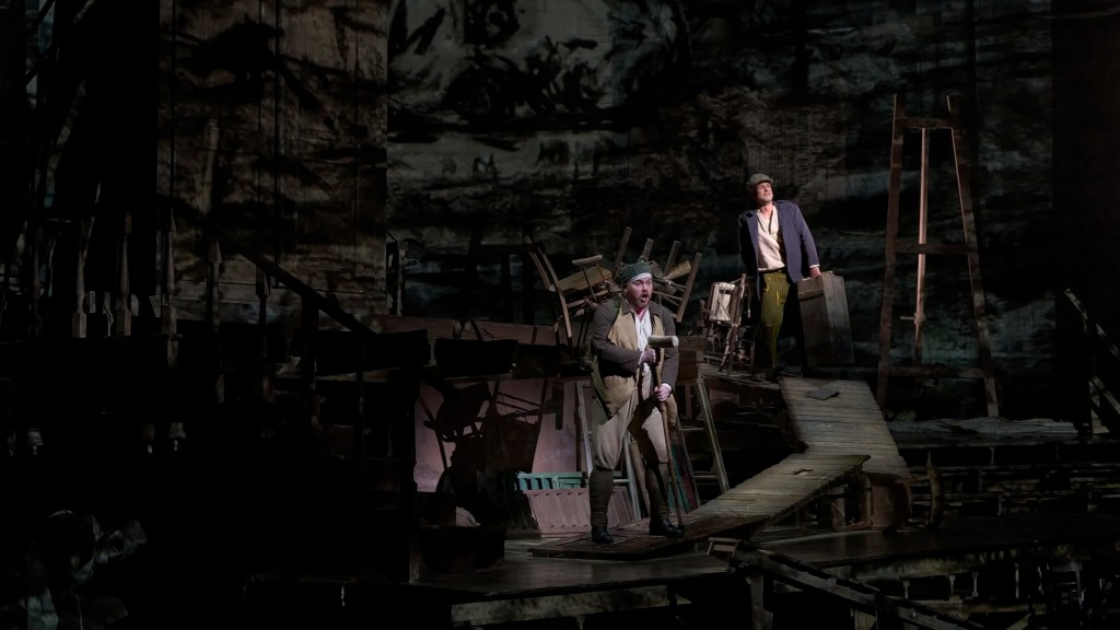 Thank you for bringing this up. Maybe I’m the wrong person to address. I know every note of this opera, sitting there devouring the presentation in awe. I did not like what the High Def broadcast did to Kentridge’s stage picture, selecting arbitrary bits & pieces, and yes, shining the wrong sort of light on their 2020 Wozzeck, Peter Mattei. For me Wozzeck is a kind of ideal realization of Wagner’s ideals, yet still has so many opportunities for singers to shine. It’s true that there are moments when you may have trouble locating the singer among a crowd as in the tavern scenes. Kentridge makes it really easy to find The Fool when he appears, a stunning moment among many.