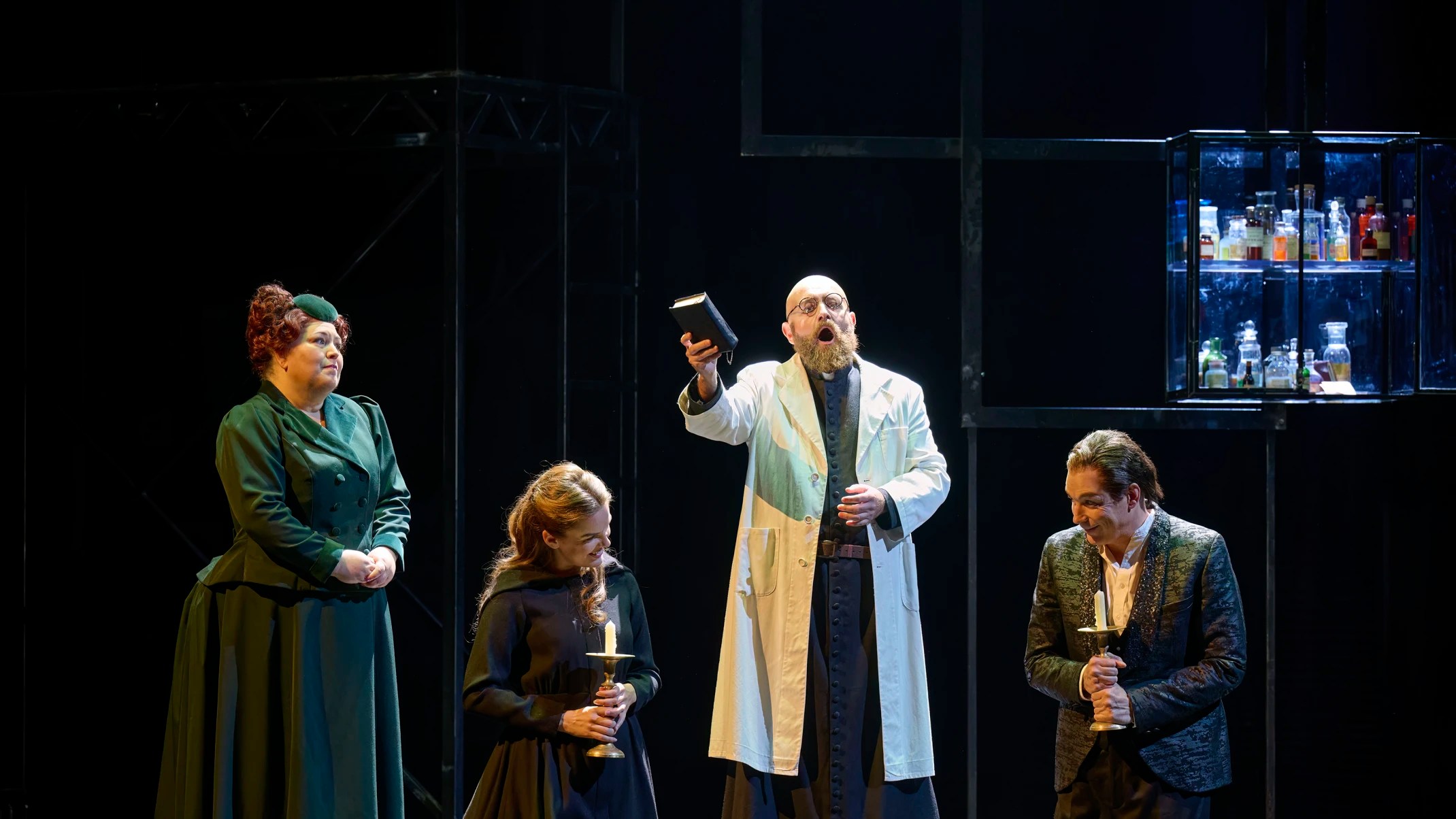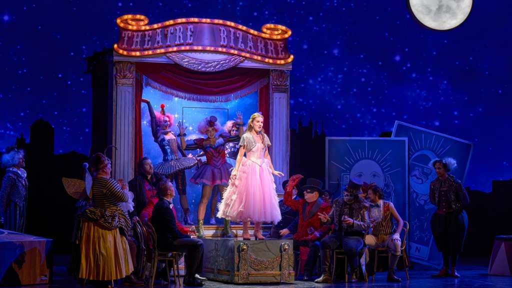 The singing is a strength of the show, led by Stephen Costello throughout, and Kseniia Proshina, who seemed to get stronger as the opera went on. It occurs to me (as i add this the morning after) that this maybe reflects the shape of the original play. Romeo is foregrounded at first with his Rosaline obsession, with his entourage (especially Mercutio), while the story shifts to focus more on Juliet with her “gallop apace you firey footed steeds” and her machinations to be married or escape marriage with Friar Laurence’s help. And with that shift, she is less the girl and more the woman, her feelings so much deeper at the end than what we see at the start, especially if we look at her through Gounod’s lens, aka her cheery aria, that the director seems to deconstruct (see photo below). I must have another look at this show as there may be something seriously feministic at work in her trajectory. I will see the opera again from up close.
