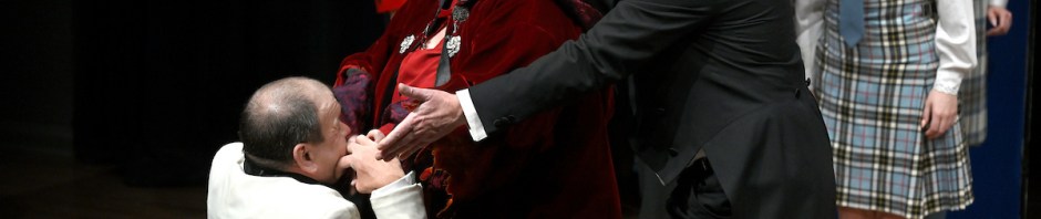 Our revised story veered between romance and comedy, still thoroughly topsy-turvy in Guillermo’s new Ontario adaptation of the story. I giggled to myself, recalling the Stratford Macbeth with bikers, jeans & leather with nary a kilt in sight, while now the kimonos were gone in favour of, what else, kilts in this incarnation.