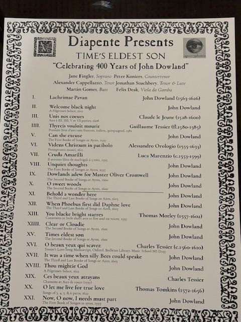 This group knows how to have fun. We heard lots of beautiful music, one of the best concerts so far in 2026 as we were taught about John Dowland, a composer who died exactly 400 years ago.