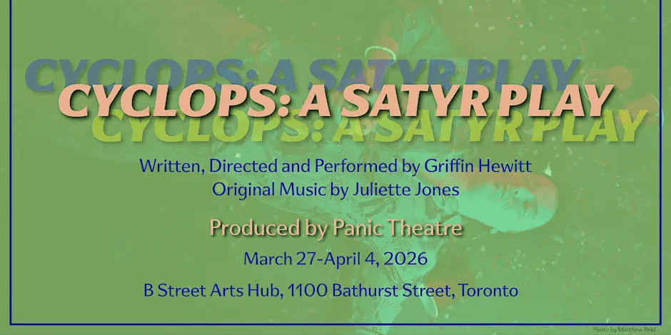 I have just seen Cyclops: A Satyr Play, Produced by Panic Theatre in association with Talk is Free Theatre, Written, Directed and Performed by Griffin Hewitt, with Original Music by Juliette Jones.