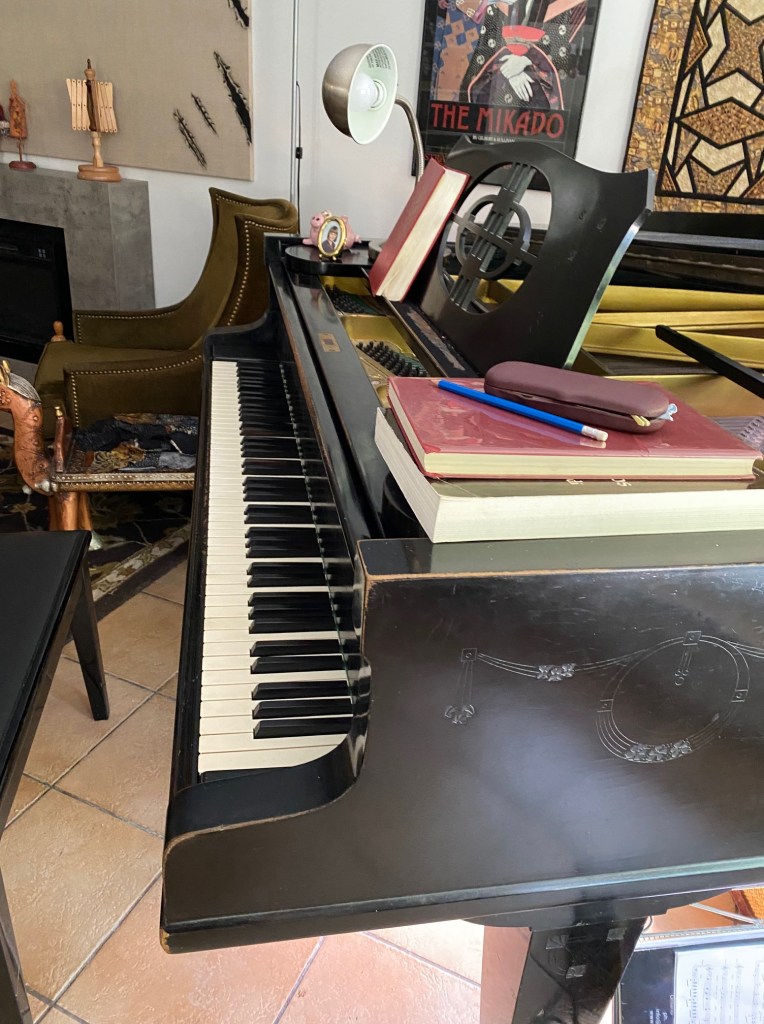 I thought it felt funny when I took the picture with my phone. Glass’s book immediately went onto the piano. This “book” is of course a musical score, read in different ways than the other two.
